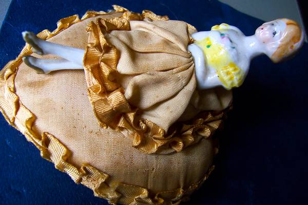 Unique doll pin cushion from the roaring 1920s. Meet to exchange or include appropriate postage to mail.