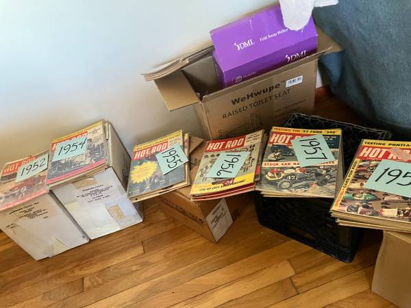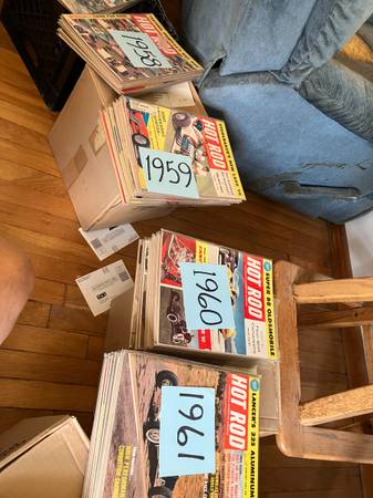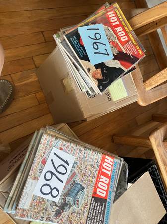 I have a collection of 775 Hot Rod magazine that I have been collecting for a long time. It is time to let them go so someone else can enjoy. This collection goes back to early 50s. I don't have every month of every year but there is a lot, 12 boxes. There are lists in the picture of the ones I have. The months that have a line drawn next to them are all 12 months. 3/4 of the magazines or in protective sleeves. $800 Thanks