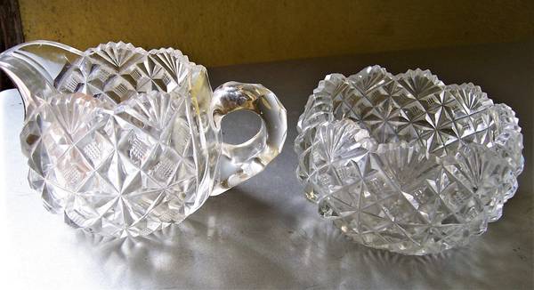 3. Two antique lead crystal sugar bowl and creamer sets. $12 per set.