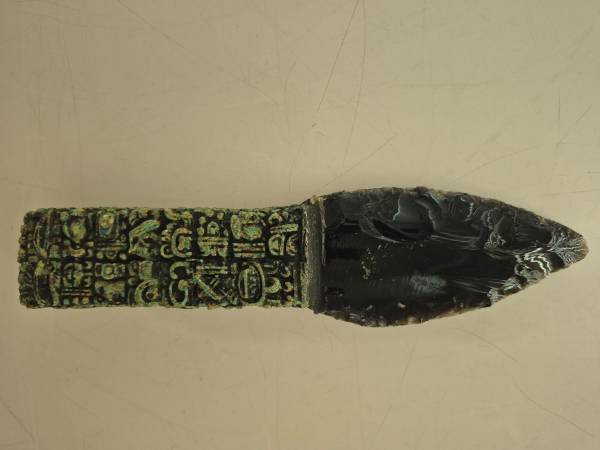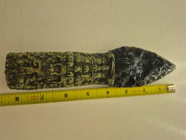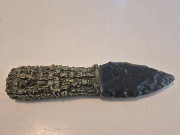Aztec Black Obsidian Ritual Knife Hand Carved