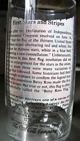 1776-1976 bicentennial glass. Copyright 1973 by National Flag Foundation under the Heritage Collector's Series from the Coca-Cola Company.