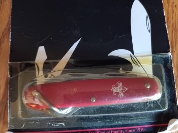 Boy Scout Utility Knife - new in package, 4 dependable blades: hand-honed steel blade, safety can opener, punch/awl, cap lifter and screwdriver.. - $28.00