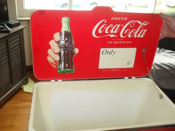 Coca Cola Ice Cooler, 1992, the top opens, spout in back to drain water, 12" x 22" x 35" tall, $120.00 (cash only)
