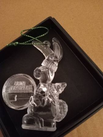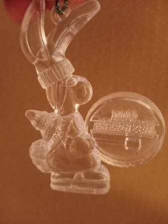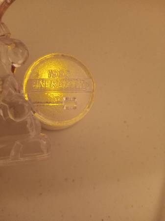 Vintage 1992 Energizer Bunny Clear Acrylic Christmas Ornament With String for Hanging "Evergreen" * smoke free home Note: 2 of the pictures I put a light behind the ornament to see it better - it...