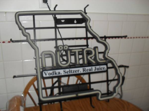 NUTRL Vodka, Seltzer, Real Juice LED Lighted Sign, in the shape of Missouri, 26" x 23", plug in, $250.00 (cash only)