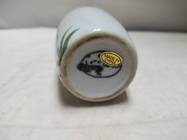 Used - excellent condition. There is a small circular nick in the bamboo above the first line of characters, but based on the glaze, this flaw was original to the product and not a sign of later wear. There are also slight natural variations in the white glaze. There is a streak of unglazed ceramic on the inside of the vase; while not visible, it can be felt from the inside and may be porous.