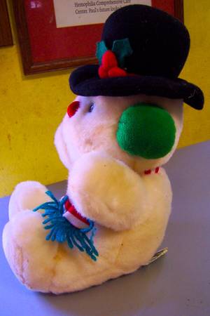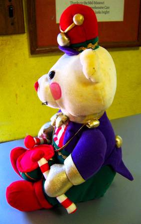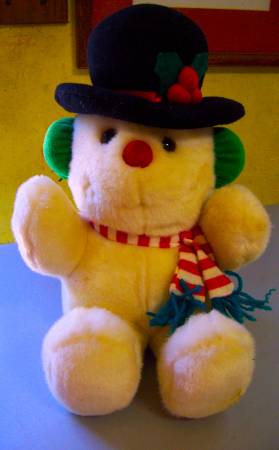 $15 each. 1. Little Drummer Bear. Measures 12" high by 6 1/2" wide and 7" deep. 2. Top Hat on Frosty the Snow bear. Measures 11" high by 7 1/2" wide and 6 1/2" deep. Meet to exchange or add...