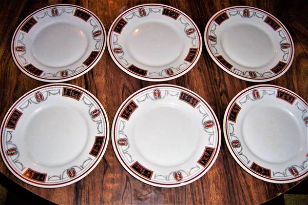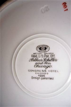 BAUSCHER China plates from Weiden-Bavaria, Germany. Sold by Arthur Schiller and Son-Chicago. These plates are from the CONGRESS HOTEL in 1926 Capone era Chicago. 7 3/4" diameter. $5 each or all six...