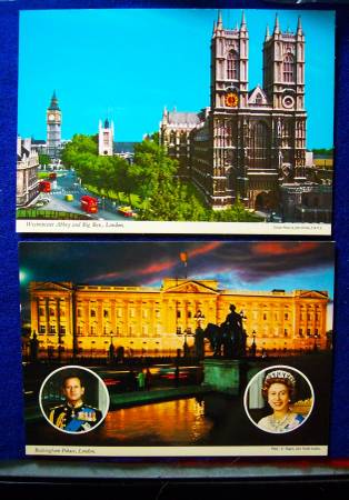 $3 each. 1. WESTMINSTER ABBEY and TOWER of BIG BEND. 2. BUCKINGHAM PALACE. Meet to exchange or include $5 to mail.