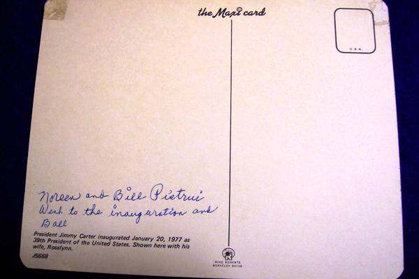Three dollars each. 1. JIMMY and ROSALYNN CARTER. 1977 inauguration. Measures 6 3/4" long by 5 1/4" high. 2. NANCY and RONALD REAGAN at the Windsor Castle with Queen Elizabeth and the Duke of...