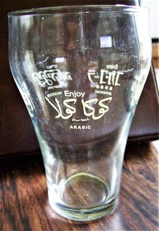 10 oz. glasses with Coca-Cola written in five languages-English, Chinese, Arabic, Hebrew and Japanese. Meet to exchange. Otherwise include $9 for shipping.