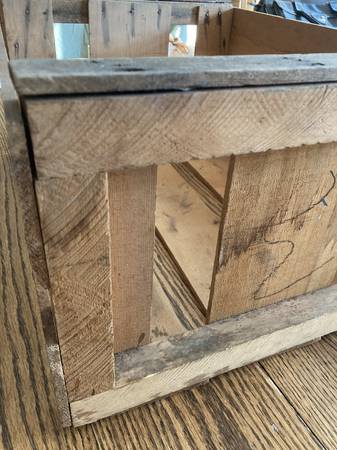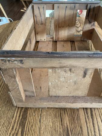 Vintage Box /Crate Wooden 22L x 16 11/16W x 10 1/2" T. Broken off particle top piece of trim. I live close to south county mall in Oakville. I prefer text or call please, thanks.