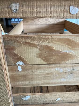 Vintage Box Wooden Slatted 24L x13 3/4W x13 3/8". Labels missing glue stuck paper pieces. I live close to south county mall in Oakville. I prefer text or call please., thanks.