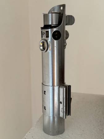The "real thing" -same as the vintage Graflex prop used as light sabers in the first Star Wars film. Director George Lucas repurposed vintage chromed steel flash bulb units from big 1940's press cameras; this is the same rare piece of hardware.