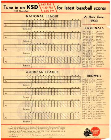 Here for sale is a Vintage 1933 St. Louis Cardinals Browns Score Sheet. The sheets are very clean with no writing or stains on them (see pictures) but there are a few rips/tears. This would be a great as part of a back-drop for a shadowbox/framed item.
