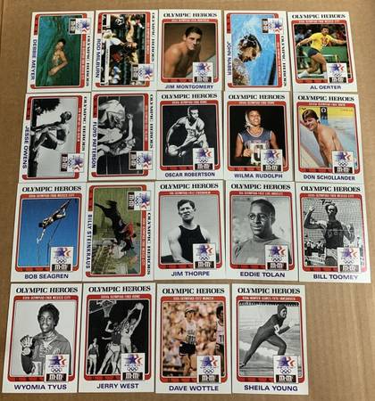Here for sale is a 1984 Topps M&M's USA Olympic Heroes Complete Boxed Set. USA Olympic greats include Muhammad Ali, Caitlyn Jenner, George Foreman, Jim Thorpe, Mike Eruzione, Jerry West, Bill Bradley Dorothy Hamill, Joe Frazier, Jesse Owens, Oscar Robertson +++. The set looks good but is not perfect, please see picture to judge the grading for yourself.