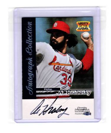 Hello St. Louis Cardinals fans, here for sale is a 1999 Fleer Sports Illustrated Al Hrabosky Certified Autographed card! A difficult card to find of a great Cardinal reliever/closer and one of the great characters of the game. Please see pictures to verify the condition for yourself.