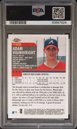 Here for sale is a 2000 Topps Chrome Traded Adam Wainwright #T88 PSA 9 Mint RC! This is a great looking card in MINT Condition. If you want an Adam Wainwright rookie then this is the one you want. This would make a Great / Fun / Cool gift for most any St. Louis Cardinals Fan - to be cherished for many years.