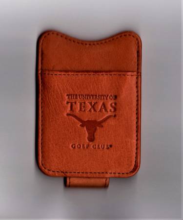 Here for sale is a Leather The University of Texas Golf Club Money Clip / Wallet. It's in Clean / New / Unused Condition. It has two separate slots for License, Credit Cards, Misc and is a Money Clip also. A Fun Collectible for any NCAA University of Texas Longhorns Fan. Any questions, just ask.