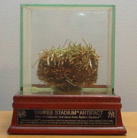 Here for sale is a NY Yankee Stadium Artifact (Piece of Authentic Freeze-Dried Sod from Yankee Stadium Final Season covering years 1923-2008). This item looks great and displays nicely (please see pictures to judge for yourself). This item came from Steiner Sports. Just a few of the Yankees greats that played on this field include: Babe Ruth, Lou Gehrig, Joe DiMaggio, Yogi Berra, Mickey Mantle, Roger Maris, Reggie Jackson, Derek Jeter, Mariano Rivera and so many others. A great collectible for any Yankees fan!