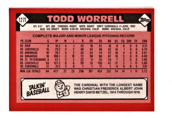 Hello St. Louis Cardinals fans, here for sale is a 1986 Topps Traded Tiffany Todd Worrell Rookie card #127T! A difficult card to find (these Tiffany/Glossy version cards are very rare and hard to find). Please see pictures to verify the condition for yourself (looks as good as can be - very high PSA quality maybe as 9 or 10).