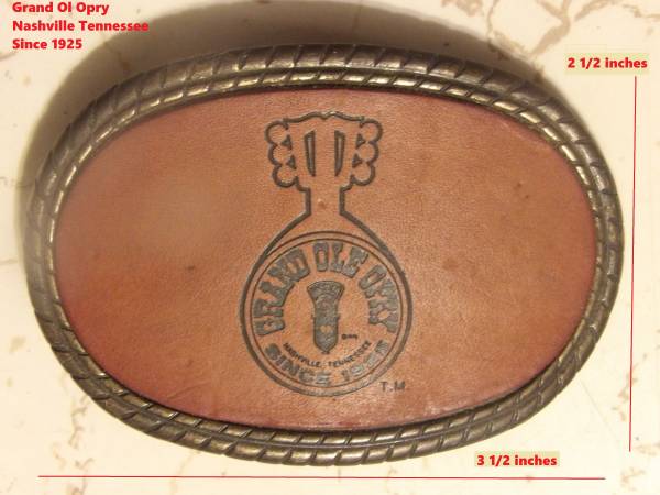 Vintage Collectible Belt Buckles $20 each: Grand Ol Opry Nashville TN since 1925 (leather front with metal rim) Henry Ford Detroit Automobiles Record Year Model T Ford (Model T on the front)...