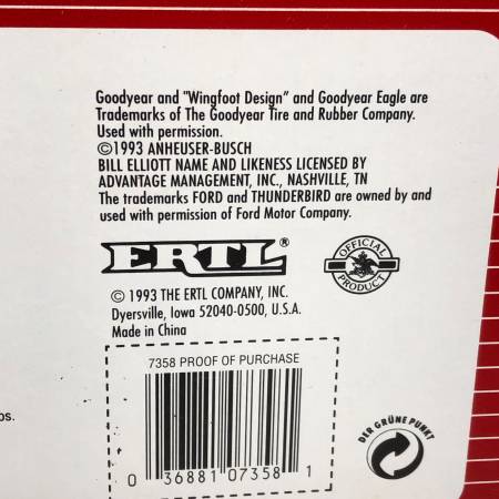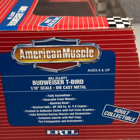 ERTL American Muscle Bill Elliott Budweiser T-Bird 1/18 Die Cast New 1993 25.00 cash Call or text Ask for Roger Washington,Mo. 63090 Franklin Co. No emails please