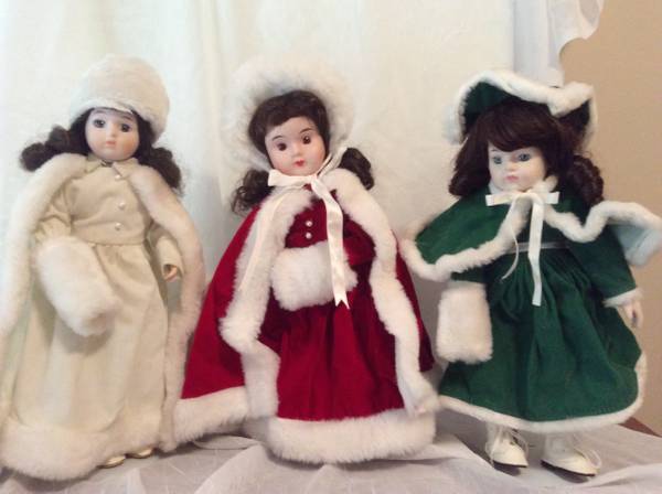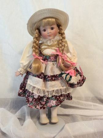 Collection of 10 Ceramic dolls all in excellent shape. No cracks or chips. Metal stand included. $15 each If you want several dolls, we can make a deal. These would make wonderful Christmas presents...