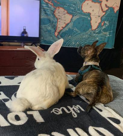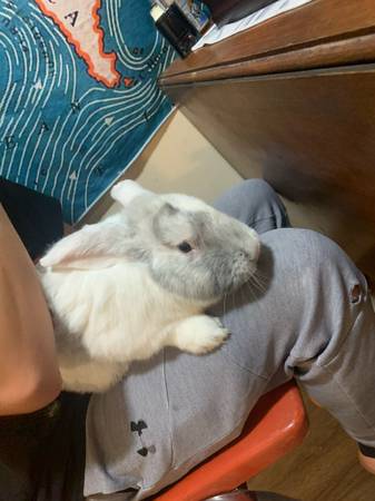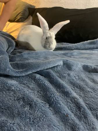 This is Lola. He is about 15 pounds and is 1 and a half years old. His name is Lola because we thought it was a female so you’re more than welcome to change his name! He comes with his cage and whatever food we have left over for him. He is an indoor rabbit only and has been since a baby and all I ask for is a good home. Serious inquiries only. Please message me for more details. Located around pacific Missouri.
