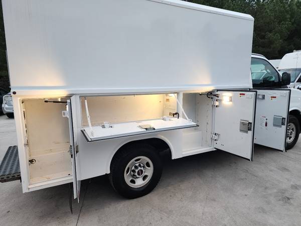 VEHICLE INFO: 2019 GMC Savana 3500 SRW KUV Enclosed Utility Service Box Plumber Work Truck Van (Same as Chevrolet Express)