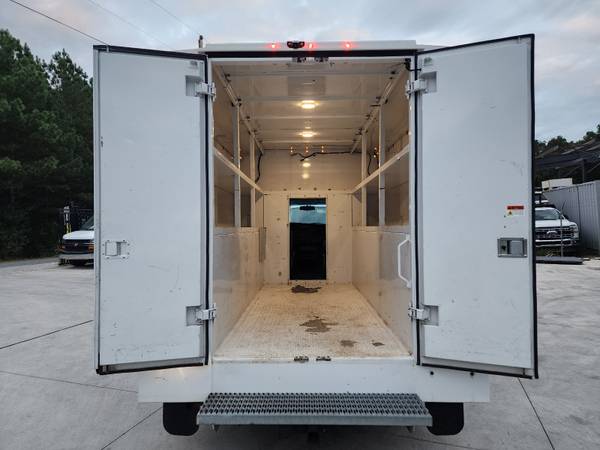 OPTIONS: GVWR 9,900 LBS, 10.5ft box, Bluetooth Connectivity, Onstar, Grey Cloth Interior, Manual Front Seats, A/C, Heater, Climate Control, Manual Mirrors, Power Windows, Power Door Locks, Rear View Camera, Cruise Control, Steering Wheel Controls, Enclosed Box, Slide Door Entry from Cab to Box, Heavy Duty Door Hinges on Exterior, Access to Storage Areas From Both Sides, Worktables Inside Box, Low Step Bumper, Tow Package, LED Cargo Area Lighting, Single Rear Wheel, and many more options!!!