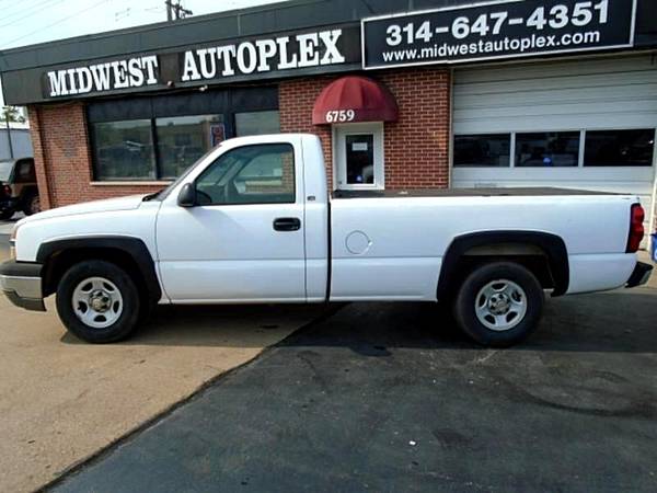 New Arrival, CARFAX CERTIFIED BUYBACK GUARANTEED! 1 ONE OWNER NO ACCIDENTS! WOW!! IT IS A 10 OUT OF 10, Our great looking 2004 SILVERADO Classic 1500 Regular Cab LWB Long 8 Foot Bed, V8 ONLY 85K MILES! TEXAS TRUCK RUST FREE, Regular Oil Changes, FROM THE FINEST INVENTORY OF USED GOVERNMENT VEHICLES IN THE COUNTRY. IT IS YOUR CHANCE TO OWN A HARD TO FIND WELL MAINTAINED TRUCK, ENTIRE MAINTENANCE RECORDS, FREE WARRANTY, absolutely STUNNING! 4.8L high output V8 engine, Automatic, no-nonsense ride with plenty of power to meet and exceed your demands. When it comes to performance and reliability, is reliable and pulls like a freight train, Its one of the most popular TRUCK models out there, its proven to be safe, reliable and an excellent investment--a proven value youll love. Make it yours before its gone! towing package, Newer TIRES, fresh oil change, and MUCH MUCH MORE !!!, Absolutely STUNNING!! Easily rated a 10 out of 10 condition wise! No rusted rocker panels or cab corners, Best Price in Town. FREE WARRANTY, Inspected, Clean CARFAX Title History! Just e-mail us and we'll fwd you a FREE copy. EASY No Haggle Price! A+ rated by Better Business Bureau. Our Clients are extremely important to us and it shows, DON'T BUY A 2007+ GM TRUCK WITH AFM OR DFM, GO CLASSIC, Financing Available (W.A.C.) at 7.99% See Condition Report on Website.Priced based on Carfax value using the most accurate information taking this cars entire VIN history into account like service records, accidents, number of owners, region the car came from, etcKBB and others are apples to oranges and not specific to this car. We are a One Price Only Dealership. This means our prices are Non-Negotiable.Call (314) 647-4351 Or TEXT (844) 925-4232 Today. MIDWEST AUTOPLEX, 6759 Arsenal Street:Apply for financing NOW more details, pictures pricing and information Copy and paste this link: WHY BUY WITH US:-We Finance Good Bad or No Credit! Generally you need a 525 credit score and two credit lines as a minimum. Please have a good cosigner or 20-40% down if you've had a bad auto loan/repo!! BUY HERE PAY HERE loan programs for local folks-We make car buying easy and hassle-free. Our upfront prices are the same online and on our lot. Car shopping should be fun and easy. At our lot it is! Our set prices mean youll never have to haggle and you can concentrate on finding the right car for you.-Rates as low as 5.25%.-A+ rating with the BBB-90 Day/4,500 Mile Powertrain Warranty or Factory Warranty. Extended Warranties available.- No dreamers or time wasters. Proof of funds, insurance, and valid drivers license required before any test drive.-Vehicles come State Inspected/Emissions with 30 day temp tags-Non commissioned sales staff, so you will never be pressured into a decision-Little to No Money Down in Many Instances-1 price used vehicles, no haggle, no pressure-Optional 3-day return policy for additional $250 plus mileage at 65.5 cents per mile-Shop 24/7 at www.midwestautoplex.com-Almost every vehicle over $10k comes with a Free CarFax Report and a CarFax BuyBack Guarantee-We have successfully shipped all over North America and Canada. Contact us for a quote.-MENTION THIS WEB AD SITE for a FREE GAS CARD with your purchase!!Midwest Autoplex makes car buying easy and hassle-free. Our upfront prices are the same online and on our lot. Car shopping should be fun and easy. At our lot it is! Our set prices mean youll never have to haggle and you can concentrate on finding the right car for you. We stand behind each and every used car we sell with a 90-Day Limited Warranty.Visit http://www.midwestautoplex.com/or Call 314-647-4351. Family owned and operated where we treat employees and customers as part of the family, discover the difference. We can arrange financing, extended warranties and delivery for you. We help people find the vehicle of their dreams at a price that is not a nightmare! Thank you for supporting my USA small business! You'll love the way we do business. Thanks for your visit. A $200 admin doc fee applicable to all vehicles purchased. In order to better assist your purchase experience, appointments are strongly encouraged. Call Dealer to confirm availability, and schedule a hassle free Test Drive. This comes with either NMVTIS report, AutoCheck or CARFAX Guarantee, which means you can buy with confidence and peace of mind. Experience Car Buying Made Simple with Enjoyable upfront pricing and interact with non-commissioned staff for a pressure free deal. **Dealership Provides a 90 Day/ 4,500 Mile Limited Powertrain Warranty for Your Protection!** FREE BOTTLE OF HOMEMADE WINE WITH EVERY PURCHASE!!This vehicle is easily accessible near the following cities: Affton, Ballwin, Bella Villa, Bellefontaine Neighbors, Bellerive, Bel-Nor, Bel-Ridge, Berkeley, Beverly Hills, Black Jack, Breckenridge Hills, Brentwood, Bridgeton, Calverton Park, Castle Point, Champ, Charlack, Chesterfield, Clarkson Valley, Clayton, Concord, Cool Valley, Country Club Hills, Country Life Acres, Crestwood, Creve Coeur, Crystal Lake Park, Dellwood, Des Peres, Edmundson, Ellisville, Eureka, Fenton, Ferguson, Flordell Hills, Florissant, Frontenac, Glasgow Village, Glencoe, Glendale, Glen Echo Park, Grantwood Village, Greendale, Green Park, Grover, Hanley Hills, Hazelwood, Hillsdale, Huntleigh, Jennings, Kinloch, Kinloch, Kirkwood, Ladue, Lakeshire, Lemay, Manchester, Maplewood, Marlborough, Maryland Heights, Mehlville, Moline Acres, Normandy, Northwoods, Norwood Court, Oakland, Oakville, Olivette, Overland, Pagedale, Pasadena Hills, Pasadena Park, Pine Lawn, Richmond Heights, Riverview, Rock Hill, Sappington, Shrewsbury, Spanish Lake, St. Ann, St. John, Sunset Hills, Sycamore Hills, Town and Country, Twin Oaks, University City, Uplands Park, Valley Park, Velda City, Velda Village Hills, Vinita Park, Warson Woods, Webster Groves, Wellston, Wilbur Park, Wildwood, Winchester, Woodson Terrace, Augusta, Cottlleville, Dardenne Prairie, Flint Hill, Foristell, Lake St. Loui