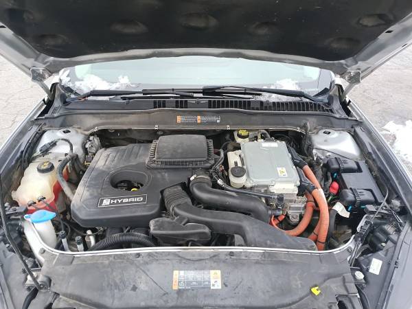 Automatic, eCVT, SYNC, Power Door Locks, Premium Sound, Power Windows, Knee Air Bags, CD/MP3 (Single Disc), Technology Pkg, Traction Control, Backup Camera, Dual Power Seats, FWD, AM/FM Stereo, Keyless Entry, 4-Cyl, Hybrid, 2.0 Liter, Perimeter Alarm System, Hill Start Assist Control, AdvanceTrac, F&R Head Curtain Air Bags, MyFord Telematics, Tilt & Telescoping Wheel, Alloy Wheels, Parking Sensors, EcoCruise Control, Power Steering, SiriusXM Satellite, Air Conditioning, Dual Air Bags, Side Air Bags, ABS (4-Wheel) Sedan Sedan 4 4 FWD 4-Cyl, Hybrid, 2.0 Liter Silver Hybrid Gray Automatic, eCVT