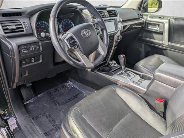 The following items have been reconditioned on this vehicle: new brakes, all new tires and new battery! * Running Boards * Sun/Moonroof * Leather Seats * Navigation System * Convenience Package * Keyless Start * Rear Spoiler * Cooled Front Seat(S) * 50 State Emissions * Black; Leather Seat Trim * Luxury Package * Midnight Black Metallic * Keep It Wild SavingsThis 2016 Toyota 4Runner Limited is proudly offered by AutoNation USA St. Louis This Toyota 4Runner Limited has a tough exterior complemented by a well-designed interior that offers all the comforts you crave. This Toyota 4Runner Limited is for the discerning driver who demands the utmost of his vehicle. This 4WD-equipped vehicle will handle majestically on any terrain and in any weather condition your may find yourself in. The benefits of driving an Four Wheel Drive vehicle, such as this Toyota4Runner Limited, include superior acceleration, improved steering, and increased traction and stability. The 4Runner Limited is well maintained and has just 93,774mi. This low amount of miles makes this vehicle incomparable to the competition. More information about the 2016 Toyota 4Runner: The Toyota 4Runner debuted in the U.S. more than 25 years ago. Now in its fifth generation, this midsized SUV uses the same platform as the FJ Cruiser and maintains its truck-like body-on-frame construction. A third row of seats is available and both the second and third rows fold completely flat without having to remove the headrests, providing a cavernous 90 cubic feet of cargo space. The optional sliding rear cargo deck can support up to 440 pounds. Interesting features of this model are durability and strength, Great combination of truck-like performance and car-like comfort, smooth and comfortable ride, and incredible off-road handling and capability