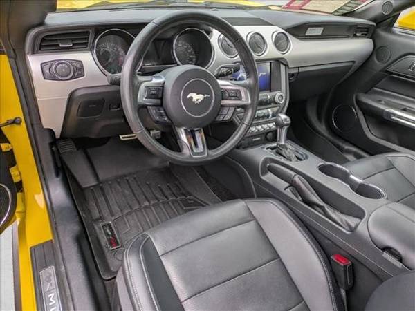 * Transmission: 6-Speed Selectshift Automatic * Pony Package * Leather Seats * Triple Yellow Tri-Coat * Keyless Start * Rear Spoiler * Cooled Front Seat(S) * Ebony Tape Stripe * Ebony; Leather Bucket Seats * Engine: 2.3L Ecoboost * Equipment Group 200A * Front License Plate BracketContact AutoNation USA St. Louis today for information on dozens of vehicles like this 2017 Ford Mustang EcoBoost Premium. This Ford includes: ENGINE: 2.3L ECOBOOST (STD) 4 Cylinder Engine Gasoline Fuel Turbocharged *Note - For third party subscriptions or services, please contact the dealer for more information.* This 2017 Ford Mustang has such low mileage it has been parked more than driven. The look is unmistakably Ford, the smooth contours and cutting-edge technology of this Ford Mustang EcoBoost Premium will definitely turn heads. More information about the 2017 Ford Mustang: The 2017 Mustang may still have one of the most recognizable names in the automotive world, but with its current design, it's far more than just a pretty face and a familiar name. It represents one of the best value propositions for buyers who just want the fastest car for their money. There is no longer a slow Mustang and a fast Mustang; there are just fast and even faster versions. The Mustang starts at just over $24,000, a price that undercuts most of its less powerful rivals, such as the Subaru BRZ. Even when optioned out beyond the $40,000 mark, the Mustang still represents a tremendous value. Interesting features of this model are available as a convertible, powerful engines, Mustang mystique, modernized styling, improved fuel economy, and sporty handling