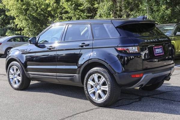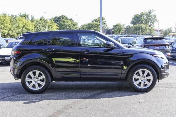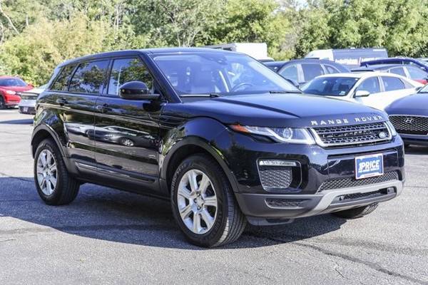 * Santorini Black Metallic * Leather Seats * Navigation System * Keyless Start * Rear Spoiler * Ebony/Ebony; Grained Leather Seat TrimThis 2019 Land Rover Range Rover Evoque SE is offered to you for sale by AutoNation Hyundai OHare. Gone are the days of SUVs being the size of a tank and handling like one. This Land Rover Range Rover Evoque is a perfect example of how SUVs have evolved into vehicles that are as refined as they are rugged. This Land Rover Range Rover Evoque SE is for the discerning driver who demands the utmost of his vehicle. Where do you want to go today? With 4WD, you can choose to drive virtually anywhere and on terrain 2WD vehicles can't handle. This 2019 Land Rover Range Rover Evoque has such low mileage it has been parked more than driven. Added comfort with contemporary style is the leather interior to heighten the quality and craftsmanship for the Land Rover Range Rover Evoque SE. You'll quickly realize how much you will need a navigation system once you are stopping for directions or looking up addresses on your phone instead of looking at the road. This Land Rover Range Rover Evoque SE features a navigation system that will free you of these unnecessary headaches. A unique vintage vehicle that exudes taste and sophistication. This wonderfully appointed vehicle comes equipped with the options and features every driver craves. Some vehicles are more of a need-to-have. This one is a absolutely-must-have. If it's looks aren't enough to persuade you, the feel of the powerhouse under the hood most definitely will. This wonderfully maintained Land Rover Range Rover Evoque is in the top 10% of its class when it comes to cleanliness and condition. With past service records included, feel comfortable knowing that the history of this Land Rover Range Rover Evoque SE is provided in order for you to make a knowledgeable decision. This vehicle's exterior has been babied. The paint is in excellent condition with nearly zero flaws or signs of age.
