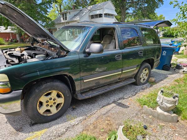 2004 Chevy Tahoe 5.3L 4x4. Transmission and engine rebuilt less then 20k miles ago. The interior is rough and there is some rust in the body. Runs and drives but will need towed as it has a brake line leak. I bought this to frame swap my 60 Chevy C10 but just had a baby so things have to go. Clean title in my name. Can be fixed and driven or used for a swap. I can make a package deal with the C10