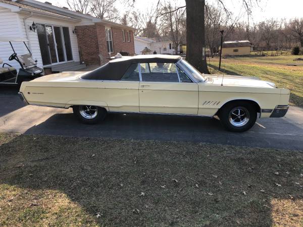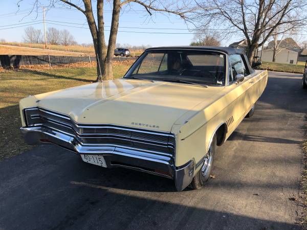 968 Chrysler 300 Convertible 440 V-8, automatic, power steering and brakes, A/C, factory radio converted to AM-FM Bluetooth, Magnum 500 wheels and new matching radial tires, new dual exhaust and air shocks. Newer correct Mopar convertible top. 120K miles, runs and drives very well. This is an original survivor car that has always been garaged and maintained very well. Car has had one repaint 30+ years ago so the body has minor flaws and is not a restored car. Prefer cash but might trade up or down on a Mopar or GM muscle car. $27,500.Call Greg at show contact info