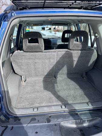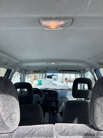 Interior in excellent shape, back seats have been folded down and covered and look hardly sat in. Roof rack. Heat and AC work perfectly, rear window defroster, stereo could use new speakers, passenger window needs to be put back on track, power window button for it is unplugged for now. 4 wheel drive also works perfectly. Out of 10 I would give it a 7-8. Frame is rusted but normal for a 24 yr old car.