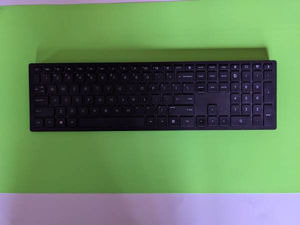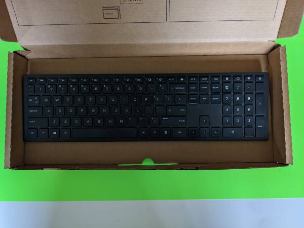 - Quality HP Wireless Keyboard. - Works perfect and in like new condition - Has built-in driver in USB for super easy setup. - Measures: 16" x 4 1/2" - Smokefree and no pets home * Thank you! Larry...