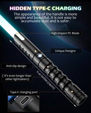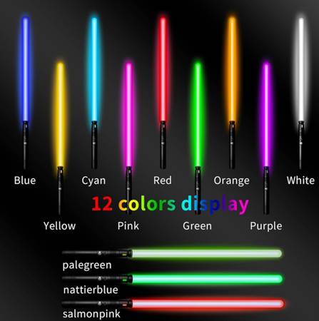Absolute advantage - ① We use a visual liner design-Integrated Inner Structure Design. So you can see how many chips we use and how the circuit arrangement is distributed. This is a feature that other 2-in-1 kids light saber don't have. ② 4 sound fonts as real movie. 12 RGB colors can be changed. Combines special combat sound effects and flash modes to bring a vivid and realistic combat experience. ③Basic smooth swing,The smooth swing of the basic model is enough for children. Basic smooth swing and clash sounds like a “real” lightsabers for Kids