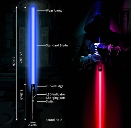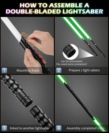 Dual light sabers for adults - The RGB Light FX Sabers is made of a Heavy duty metal hilt and a sturdy PC blade. Matte finish, comfortable to handle, blade made of high strength acrylic, hard and durability, stood up to more abuse. Whether you wield it in epic battles or display it as a prized collector's item, this adult lightsaber is trustworthy
