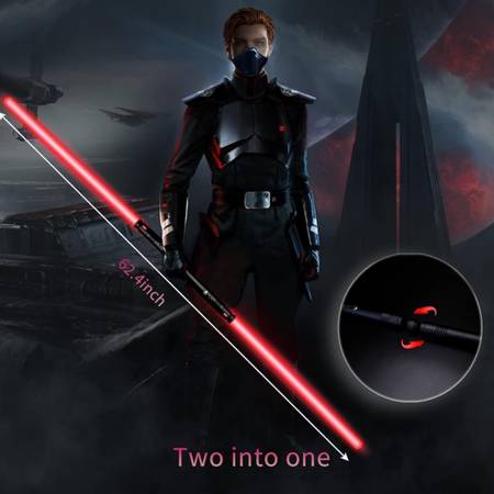 The newest design - Dual Duel/Compose 2-in-1 Lightsabers for Dueling. Compared with the same type of Double lightsaber in the market, we have upgraded the aluminum alloy hilt, which is heavier and more textured. Instead of carrying an extra connector, you can compose a Darth Maul Lightsaber by simply unscrewing the pommel of one of the light sabers. Dueling Light saber can be used as two separate ones or one longer double ended one