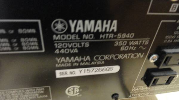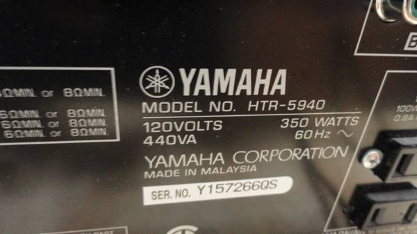 Up for sale is a clean and working Yamaha HTR-5940 Natural Sound A/V Receiver XM Ready 120V. 350W. Powers right up. Works great. NO REMOTE.