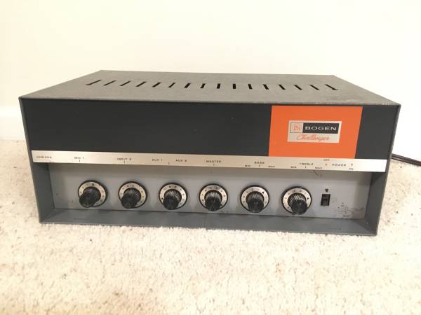 Stock Bogen Challenger CHB 35A Tube Amplifier -fully functioning with no hums or hissing. -Has 3 prong grounded power cable. -Light surface rust in a couple spots.