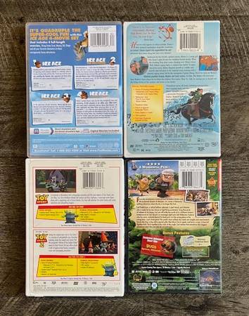 This offer is for a lot of 8 Walt Disney World Animated Movies. These DVDS are all in good to excellent condition from a smoke free/pet free home. Only $10 buys all 8 movies listed in this lot! ***NOTE: If wanting to purchase only one of the single disc movies from this lot, the price would be $5 for one movie. If wanting to buy only 2 movies or the TOY STORY double feature, the price would be $7 for two movies. The ICE AGE 4 movie pack would be $10 by itself. Otherwise, only $10 buys all 8 movies listed in this lot.***