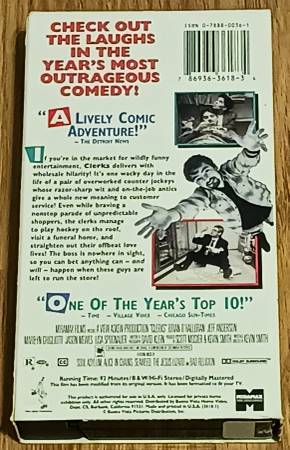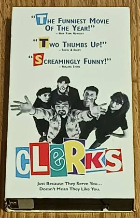 Here for sale is an Original VHS Movie Tape of CLERKS - Very Difficult to find! This movie is an All-Time Classic: Kevin Smith Jason Mewes Brian O'Halloran Jeff Anderson Marilyn Ghiglotti Lisa Spoonauer. This tape is long since out of production and has become a collector's item. The box and tape are in very good / clean condition.