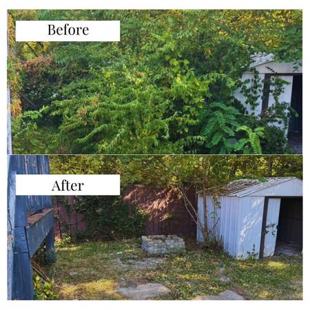 Are the weeds and wild schrubs closing in on your yard. We'll cut them back and make room for your yard.