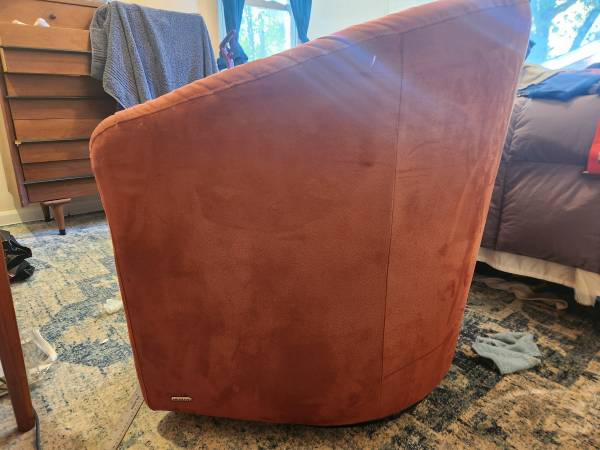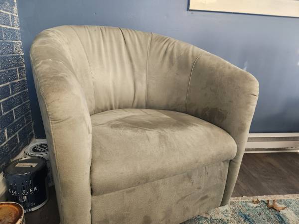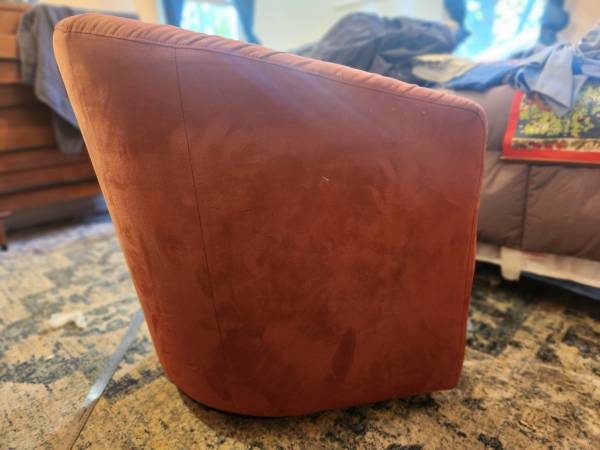 3 excellent Natuzzi Suede barrel chairs. 2' 8" high... 2' 6" wide. My wife loved these chairs because she could put her feet flat on the floor.. she was very short.