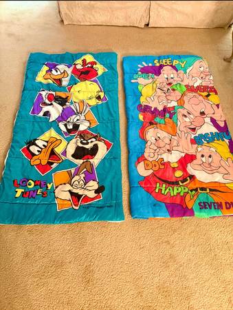 2 Sleeping Bags - 1 Looney Tunes Sleeping Bag and 1 Seven Dwarfs Sleeping Bag
